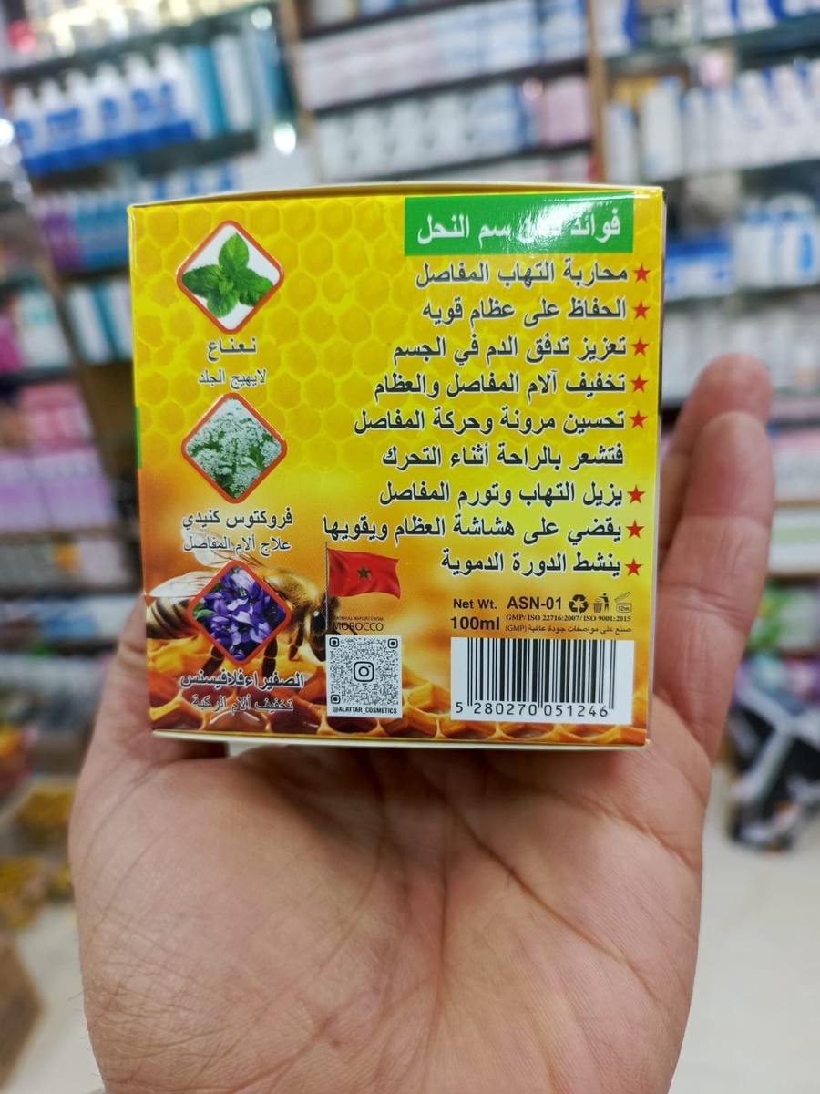 هل تعانين من آلام مزعجة في الركبة أو المفاصل تعيق حركتك اليومية؟ دهن سم النحل لعلاج أوجاع الجسم من العطار هو الحل السحري والطبيعي الذي تبحثين عنه. صُنع هذا الدهن بعناية فائقة في المغرب، ويتميز بتركيبة فعالة وسريعة الامتصاص تجمع بين قوة سم النحل العلاجية وخلاصات نباتية مهدئة، ليمنحكِ راحة فورية تدوم طويلاً.