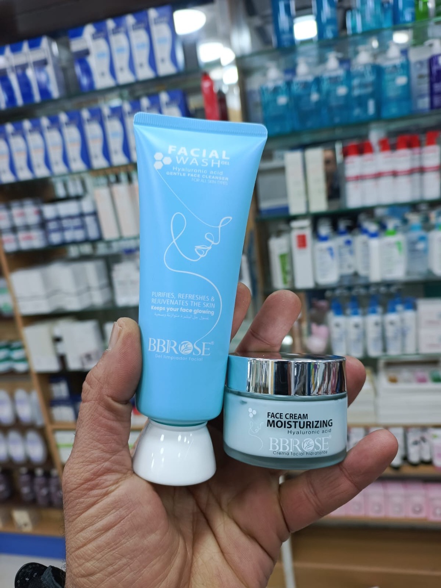 امنحي بشرتك جرعة مكثفة من الترطيب والنضارة مع بكج العناية اليومية بحمض الهيالورونيك من العلامة المتميزة بي بي روز (BBROSE). ثنائي مثالي يعتمد على قوة الهيالورونيك ليعيد بناء الكولاجين الطبيعي ويترك بشرتك نظيفة، مشدودة، ومشرقة طوال اليوم.