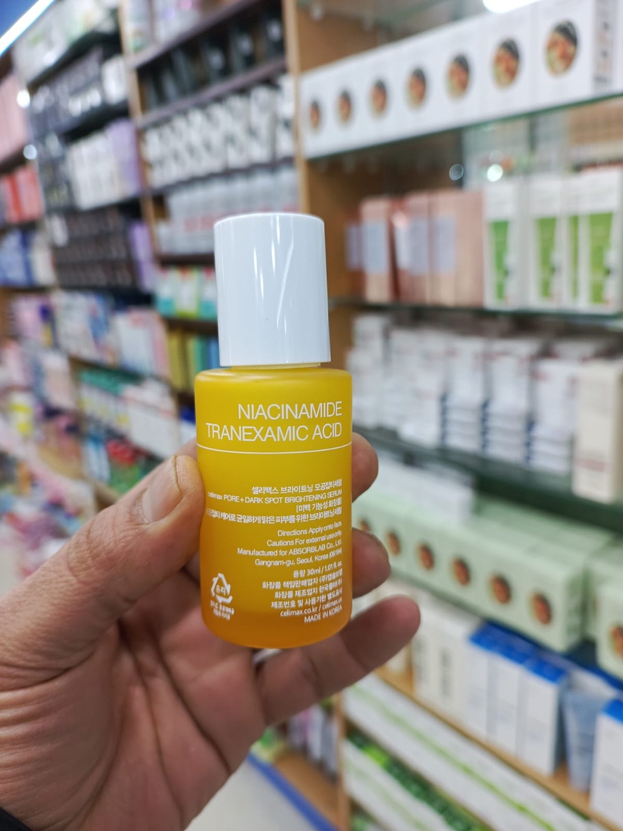 - حمض الترانيكساميك 3% (Tranexamic Acid): هاد المكون "التريند" حالياً عند أطباء الجلدية، لأنه الأقوى في علاج الكلف وآثار الحبوب الحمراء والبنية.