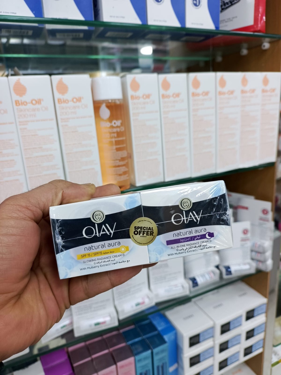تألقي ببشرة نضرة ومشرقة على مدار الساعة مع بكج العناية والتفتيح المتكامل من أولاي ناتشرال أورا (Olay Natural Aura). روتين يومي مزدوج غني بخلاصة التوت الطبيعية، مصمم خصيصاً ليمنحكِ لوناً موحداً، ترطيباً عميقاً، وحماية أكيدة لتحصلي على التوهج الذي تستحقينه.