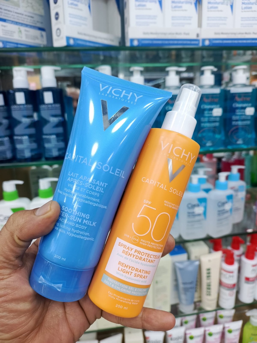استعدي لأشعة الشمس بثقة وأمان مع بكج الحماية المتكاملة من فيتشي كابيتال سولاي (Vichy Capital Soleil). عناية مزدوجة للوجه والجسم تضمن لكِ حماية قصوى وترطيباً عميقاً قبل وبعد التعرض للشمس.