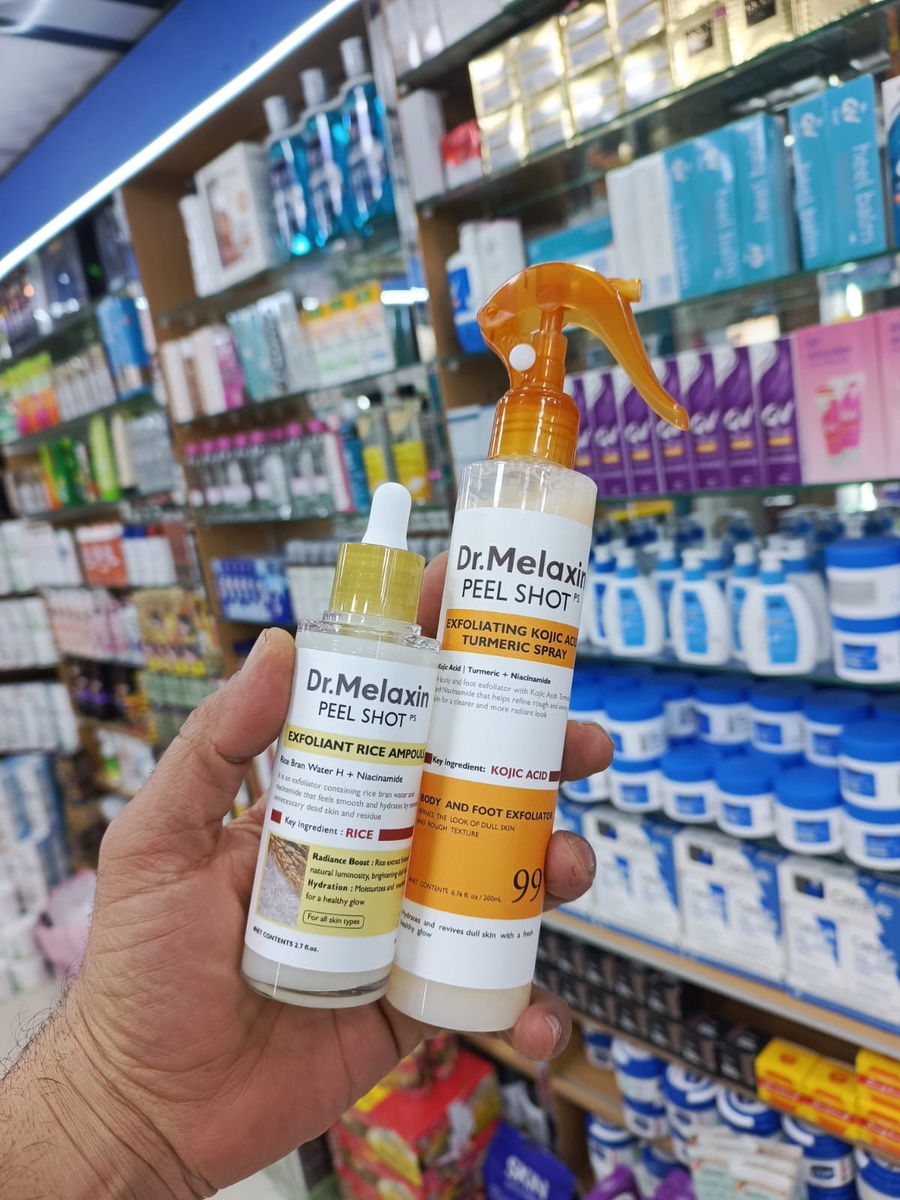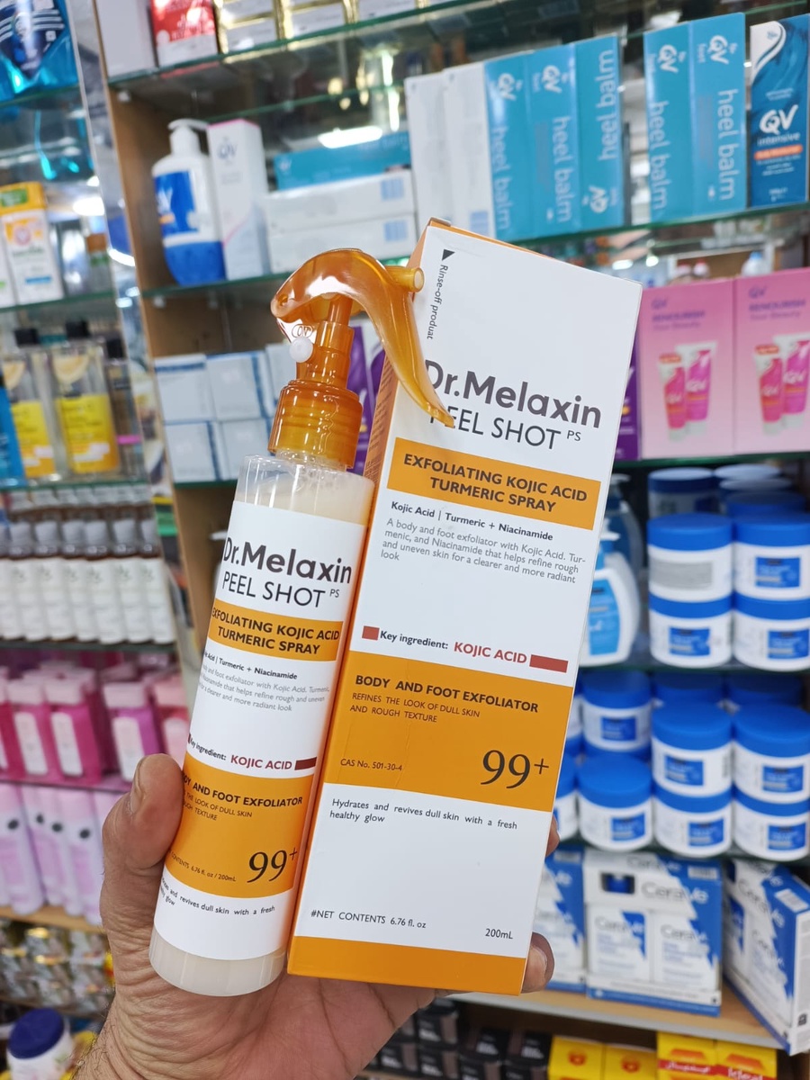 استعيدي إشراقة بشرتكِ ونعومتها مع مجموعة دكتور ميلاكسين للتقشير. بخاخ حمض الكوجيك والكركم لتجديد بشرة الجسم.