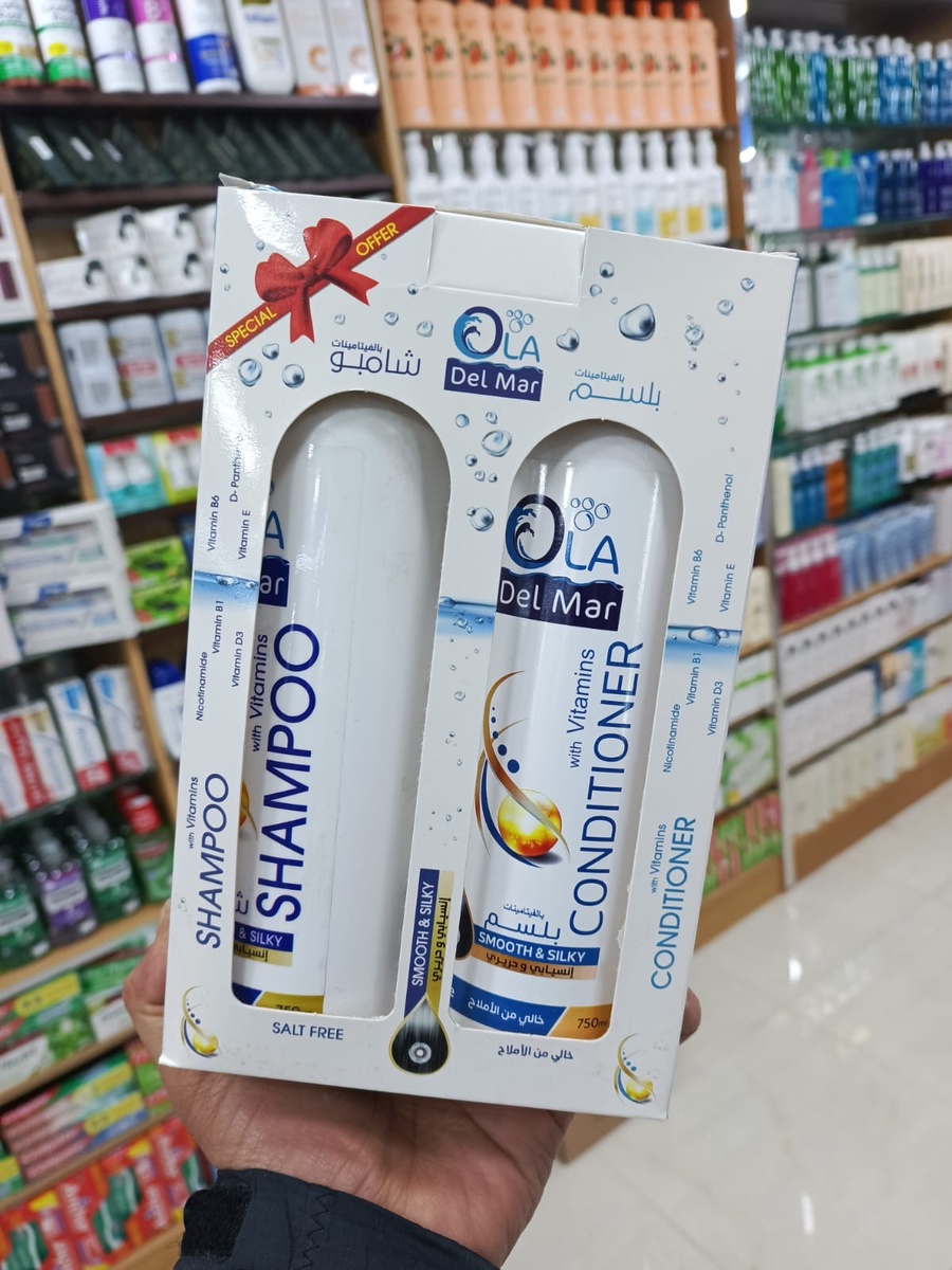 يقدم لكِ Ola Del Mar هذا البكج المميز الذي يحتوي على شامبو وبلسم في عبوة واحدة أنيقة. صُمم هذا الثنائي ليمنح شعرك العناية الفائقة التي يحتاجها، خاصة إذا كان شعرك مصبوغاً أو معالجاً بالبروتين والكيراتين، بفضل تركيبته الآمنة والمغذية.