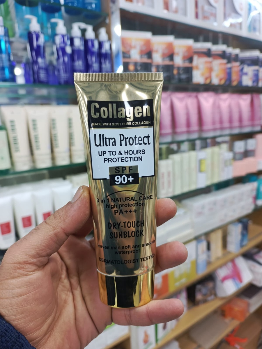 نقدم لكِ واقي شمس الكولاجين الطبيعي (الأصلي)، المنتج الذي يعمل بذكاء مضاعف: فهو ليس مجرد واقي شمس بحماية عالية جداً (90)، بل هو كريم معالج يعوض بشرتك بالكولاجين الطبيعي لتبقى مشدودة ونضرة.