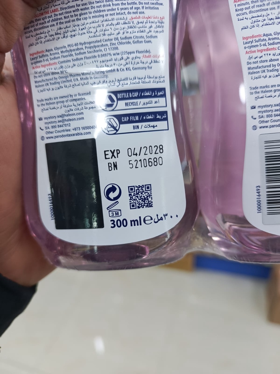 طريقة الاستخدام: استخدميه يومياً بعد تفريش الأسنان (يفضل بمعجون بارودونتكس). تمضمضي لمدة دقيقة ثم ابصقي، لضمان لثة وردية وصحية.