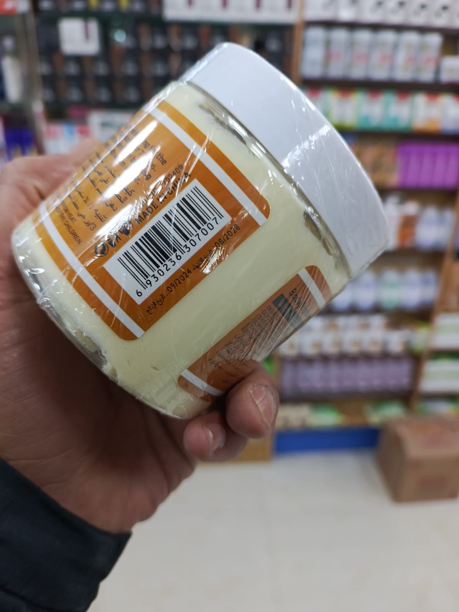 - خلاصة زبدة الشيا: يظهر بوضوح على العبوة صورة زبدة الشيا (Shea Butter)، وهي المكون الأفضل لترطيب الجسم ومنحه ملمساً ناعماً ومخملياً، مما يجعله ممتازاً للتخلص من الجفاف والخشونة.