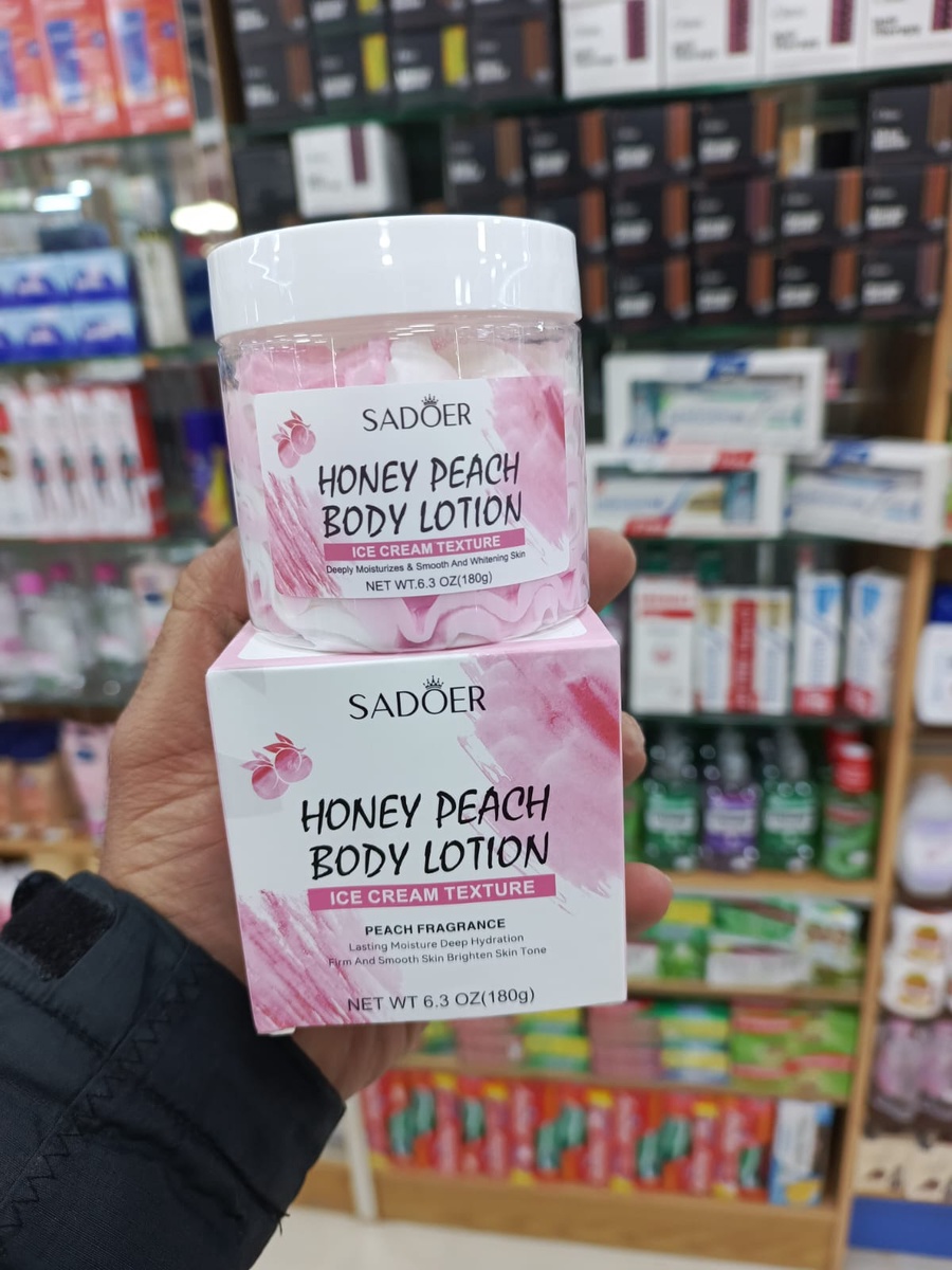 يعد SADOER Honey Peach Body Lotion تجربة فريدة في العناية بالجسم، حيث يجمع بين رائحة الخوخ (Peach Fragrance) الجذابة والقوام المبتكر الذي يمنح بشرتك نعومة مخملية فوراً دون ملمس لزج.