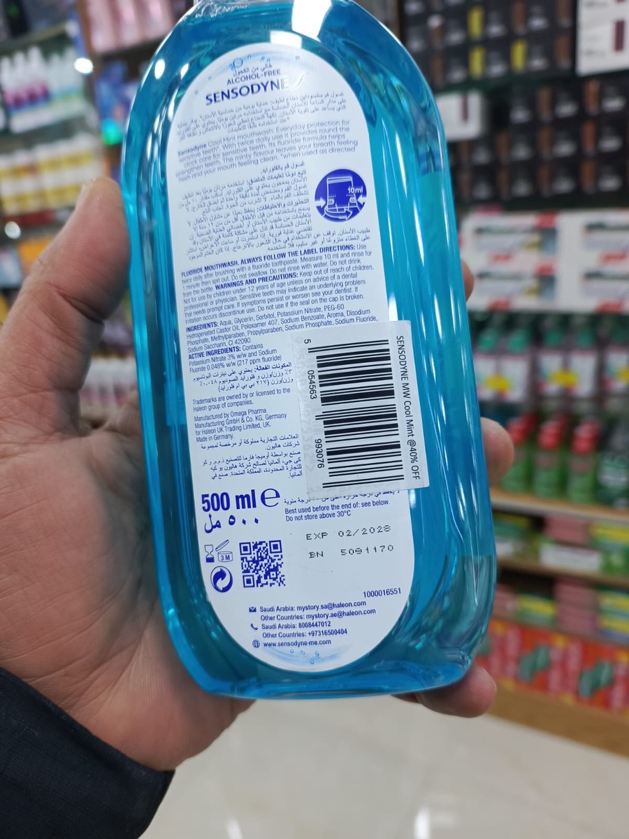 - خصم هائل (40% OFF): العبوة تأتي بملصق خصم رسمي 40%، مما يجعله أرخص سعر لغسول سنسوداين الأصلي في السوق حالياً.