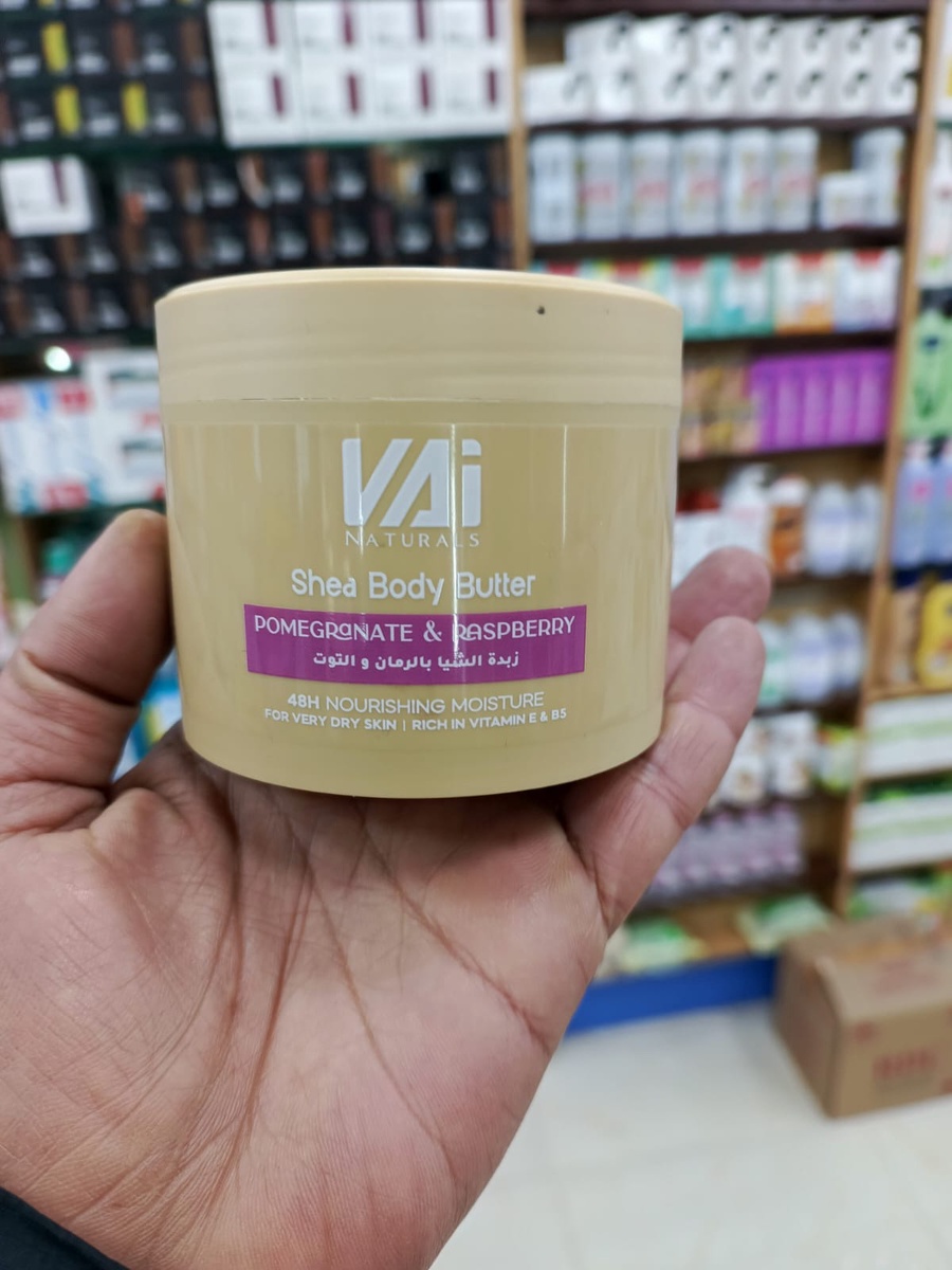 تعتبر VAI Naturals Shea Body Butter الحل المثالي لمن تعاني من جفاف الجلد المستمر. بفضل مزيجها القوي من الزبدات والزيوت الطبيعية، تمنحكِ هذه الزبدة ترطيباً مكثفاً (48H Nourishing Moisture) يجعل بشرتكِ ناعمة ومشرقة طوال اليوم.